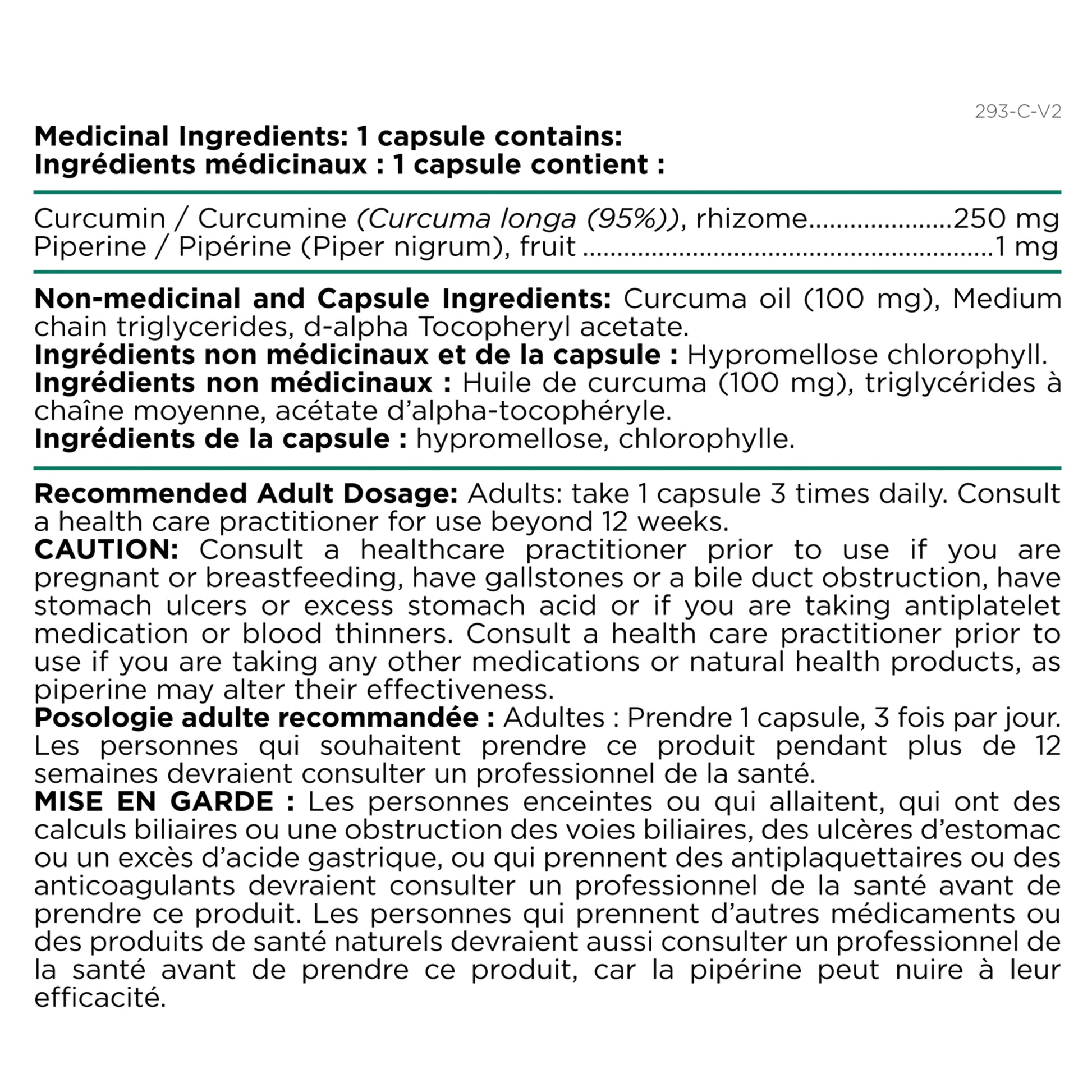 Other Ingredients : Curcuma Oil, medium chain triglycerides, tocopherol acetate hypromellose, chlorophyll
