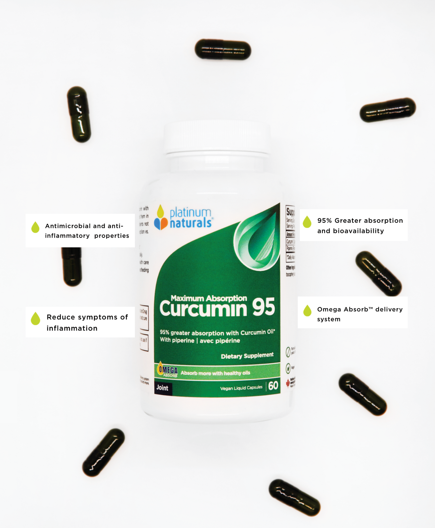 Curcumin Complete 95 combines Curcumin, known for its antioxidant, antimicrobial and anti-inflammatory properties, with Piperine from Black Pepper and suspends them in Curcumin Oil for optimal absorption. Curcumin has poor bioavailability, but when suspended in oils the body can absorb more than 95%.