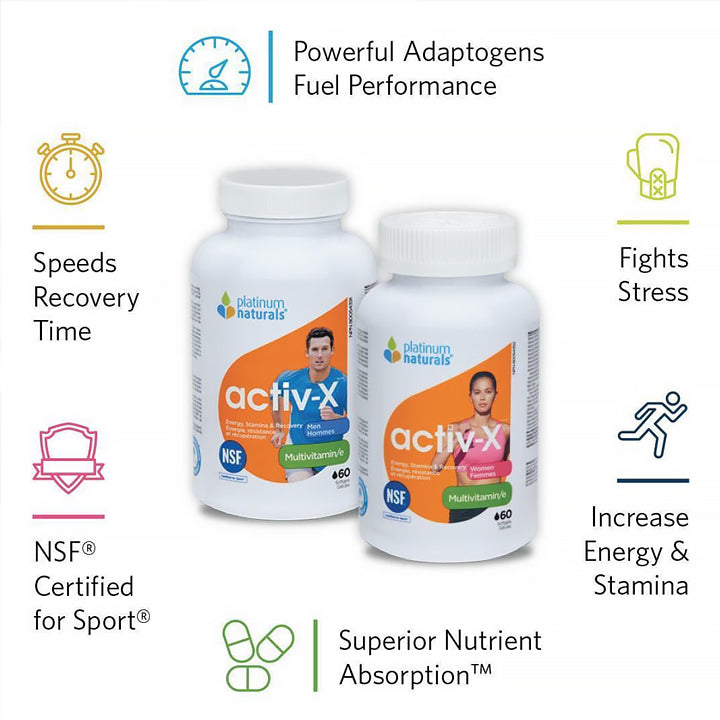 activ-X is scientifically developed for performance. You’ll feel the increased energy as you train harder, maximize endurance and experience faster recovery. Much more than a multivitamin, activ-X features essential vitamins, minerals, antioxidants, omega oils and adaptogens to raise energy and improve stamina.